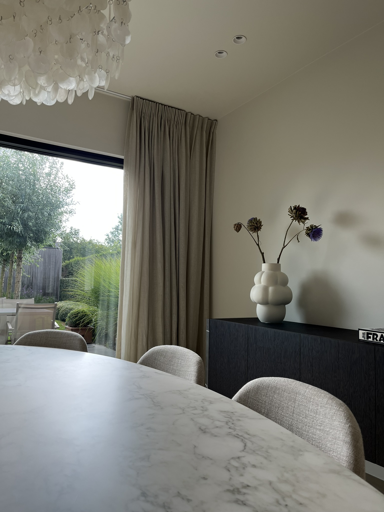 Hoewel klein gestart van thuis uit en zonder showroom, groeide de zaak snel en werd een uitbreiding in 2008 noodzakelijk. De woning aan de Gierlebaan 56 werd grondig gerenoveerd tot winkel en atelier. We behielden enkele originele details zodat je vandaag nog steeds het gevoel krijgt om echt bij ons “thuis” te komen in een woning waar geleefd wordt. De volledige bovenverdieping is mijn atelier waar ik nog steeds alle gordijnen eigenhandig confectioneer met oog voor de kleinste details.