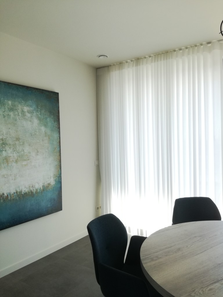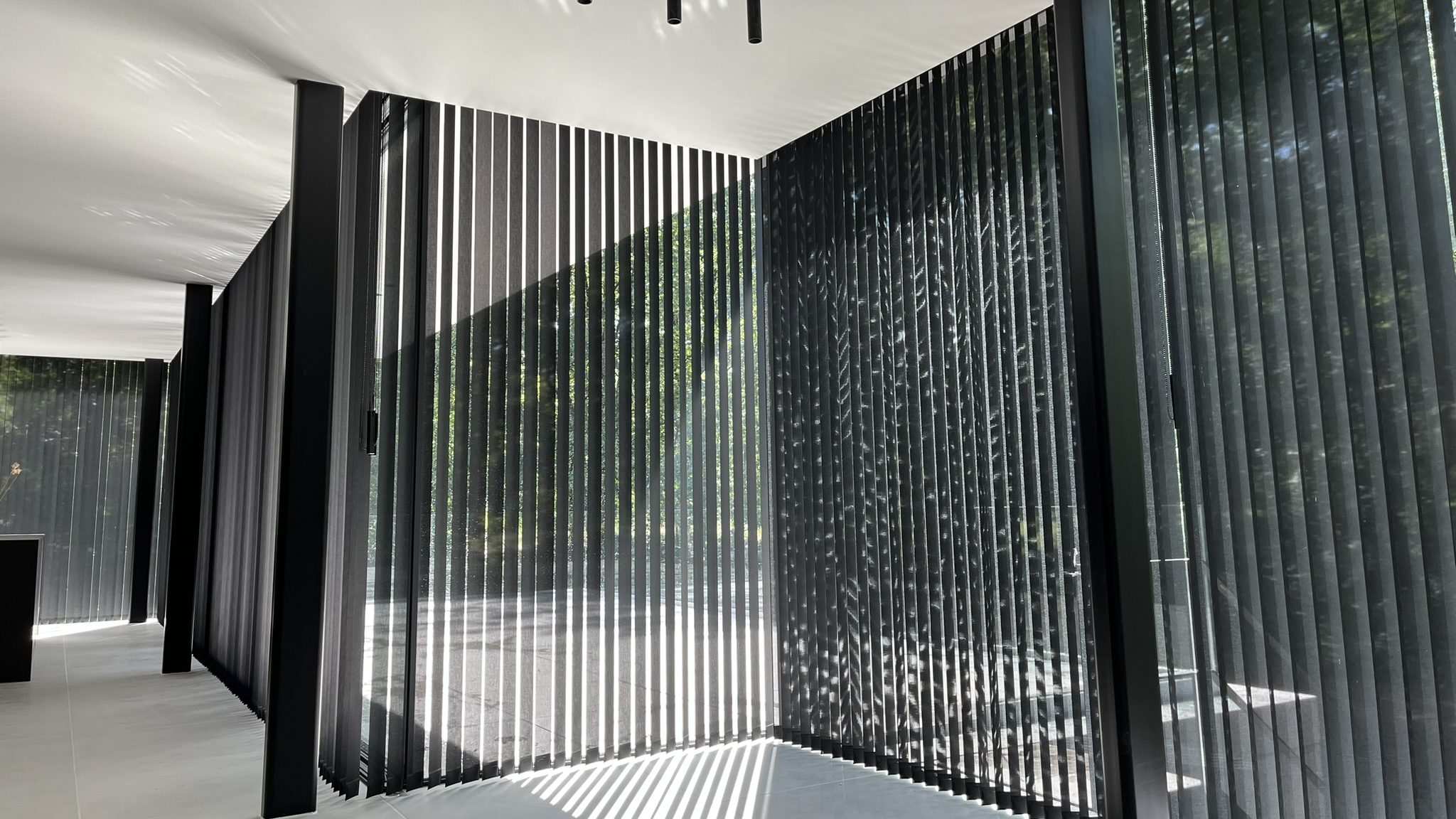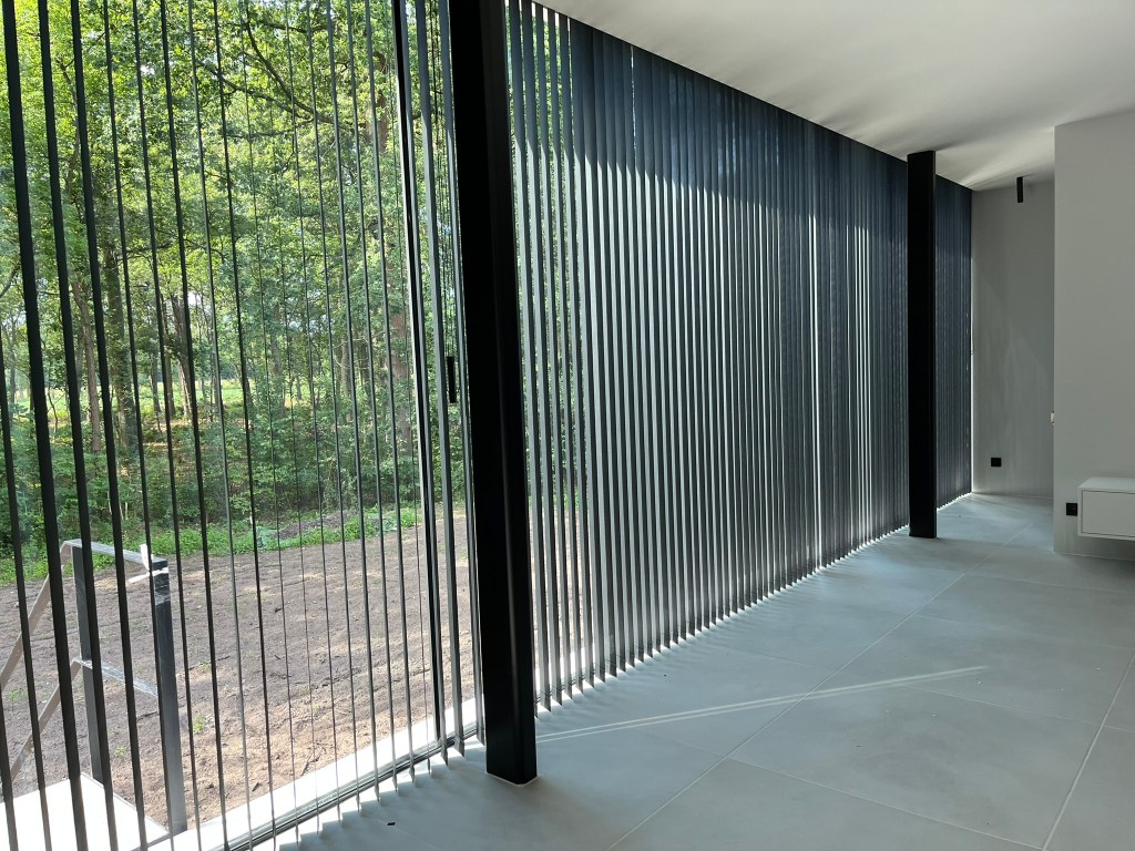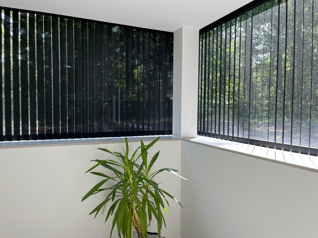 Een modern interieur met verticale jaloezieën